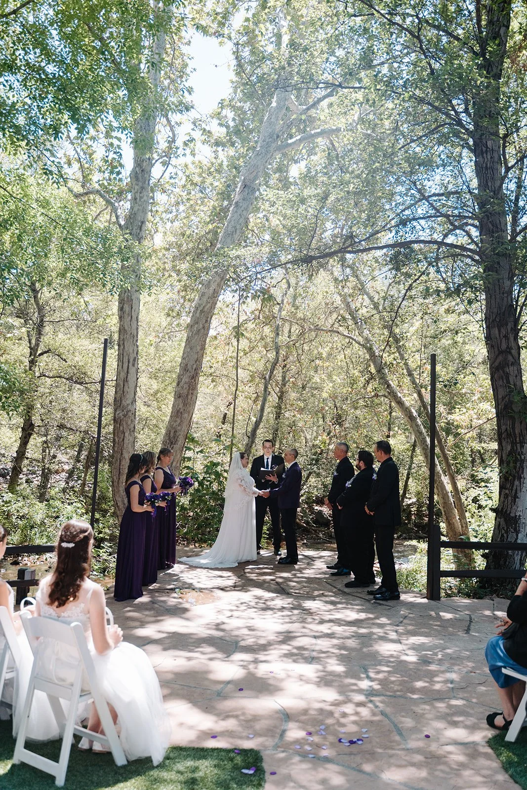 Crystal and Jimmy were married in August, 2025 at the L’Auberge de Sedona Cottages on the cottage side lawn in Sedona, Arizona. Their day felt intimate and peaceful, sunlight through the trees, red rock views nearby, and a ceremony that centered on what mattered most. It was the kind of celebration that didn’t rush: gentle, meaningful moments, plenty of connection, and a reception that felt easy and full of joy.